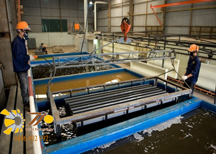 Thông thường hệ thống xử lý, làm sạch bề mặt sẽ bao gồm có 7 loại bể khác nhau để làm sạch tới 99,99% bề mặt của vật sơn.
