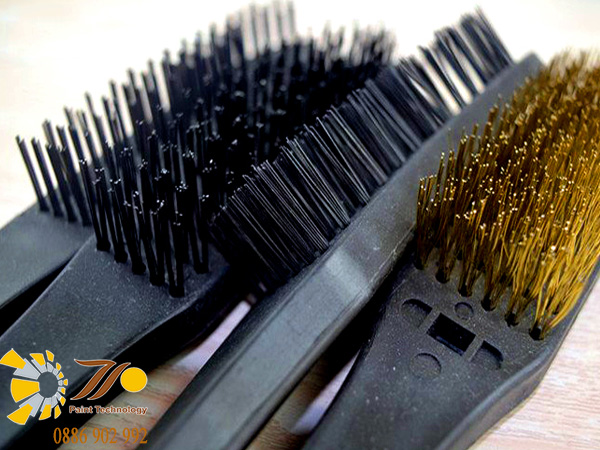 - Làm sạch bằng bàn chải sắt: Có nghĩa là sử dụng bàn chải sắt để chà lên bề mặt kim loại cho đến khi hết rỉ sắt và loại bỏ được hết lớp bụi bẩn mới thôi.