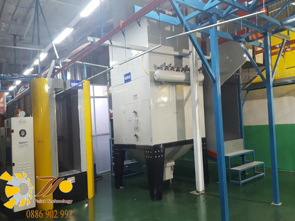 Một hệ thống dây chuyền sơn tĩnh điện gồm có: Buồng phun sơn, lò sấy sơn tĩnh điện và cuối cùng là một hệ thống băng tải treo để đưa sản phẩm vào lò.